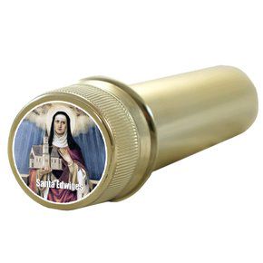 Aspersório para água benta em acrílico dourado, com adesivo na tampa.