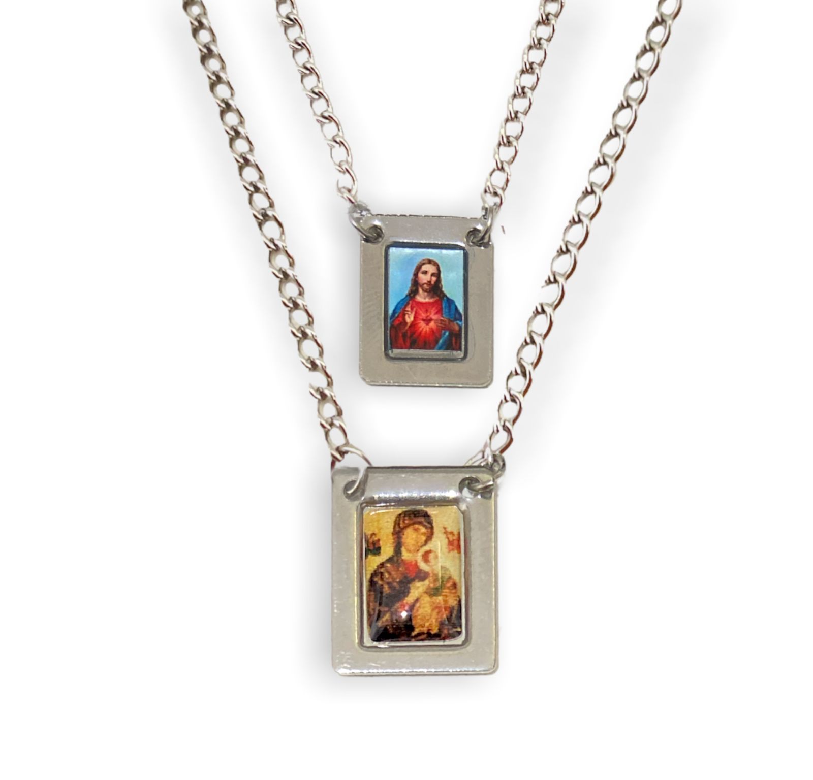 Escapulario Aço Inox Perpetuo Socorro e Sg Coração de Jesus