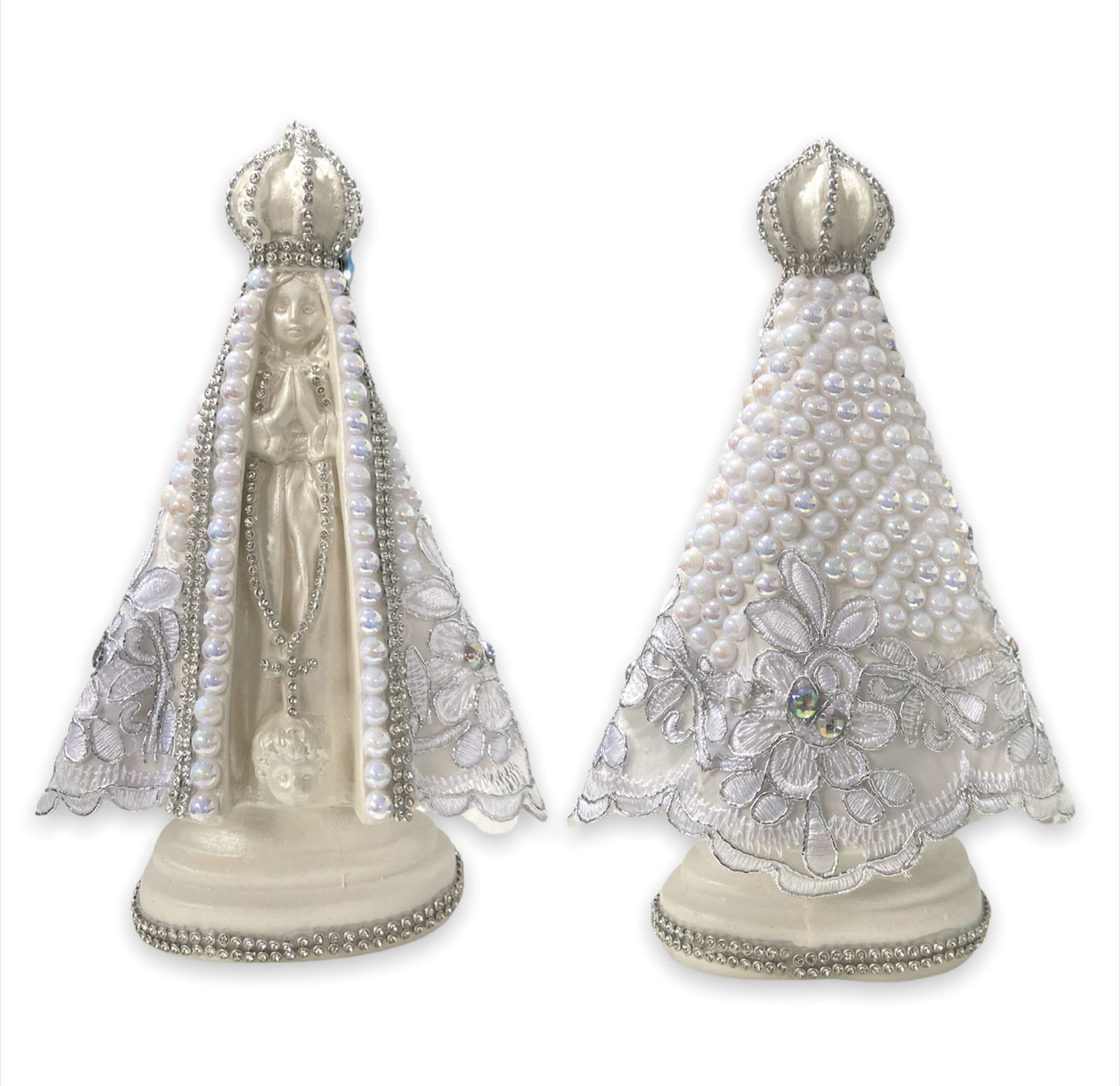 Imagem Nossa Senhora Aparecida Perola Branca Trabalhada 23cm