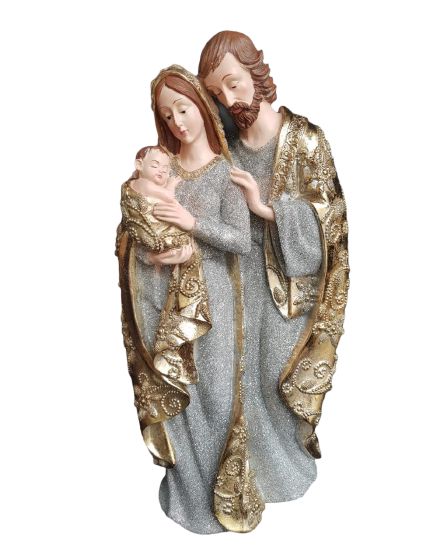 Imagem Sagrada Familia Resina Importada Prata Luxo 30cm